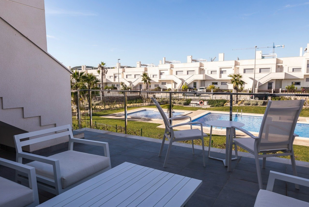 Complejo con instalaciones comunitarias y piscina consta de bungalows de 2 y 3 dormitorios, en planta baja con jardín privado y planta alta con solarium privado, cocina abierta con la zona del salón, armarios empotrados, terraza.