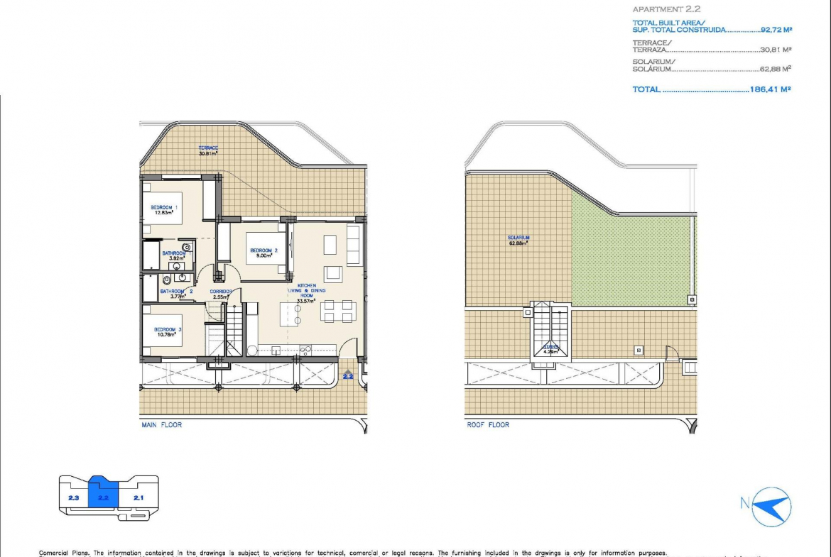 La promoción consta de 13 apartamentos contemporáneos de 2, 3 o 4 dormitorios y 4 villas exclusivas de 3 dormitorios. Los compradores pueden elegir entre apartamentos en planta baja o en planta intermedia con amplias terrazas, o áticos con soláriums privados. Todas las propiedades incluyen una plaza de aparcamiento privada y un trastero en el garaje subterráneo, accesible por ascensor.