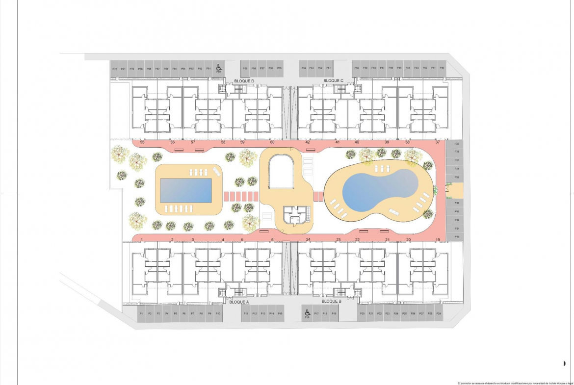La promoción consta de 72 apartamentos de 2 y 3 dormitorios y 2 baños, uno de ellos en suite, distribuidos en cuatro modernos edificios. También está prevista una segunda fase con bungalows y villas, lo que añadirá aún más valor y atractivo a la zona.