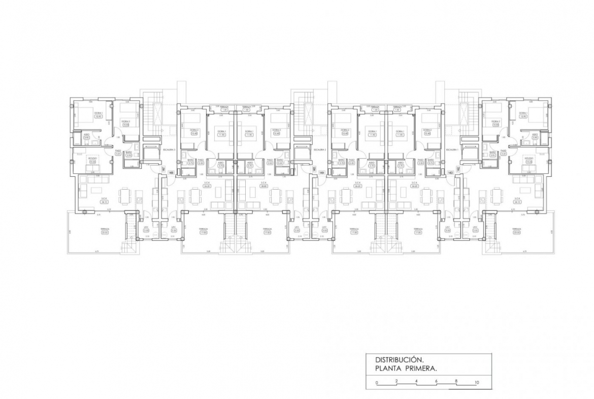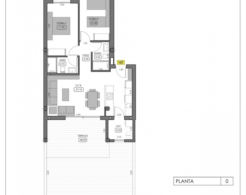 These sunny bungalow apartments are distributed in two blocks, has 2 and 3 bedrooms, 2 bathrooms, open plan kitchen with the lounge area, fitted wardrobes.
