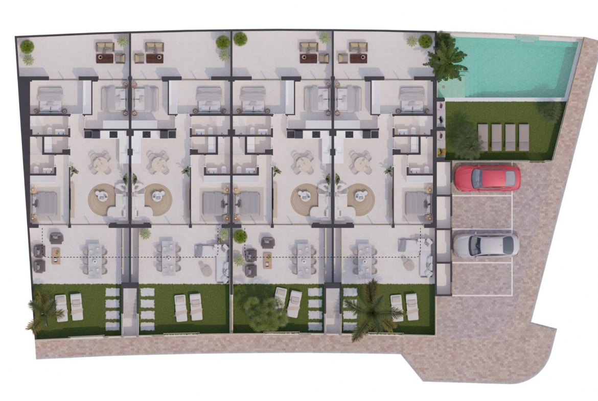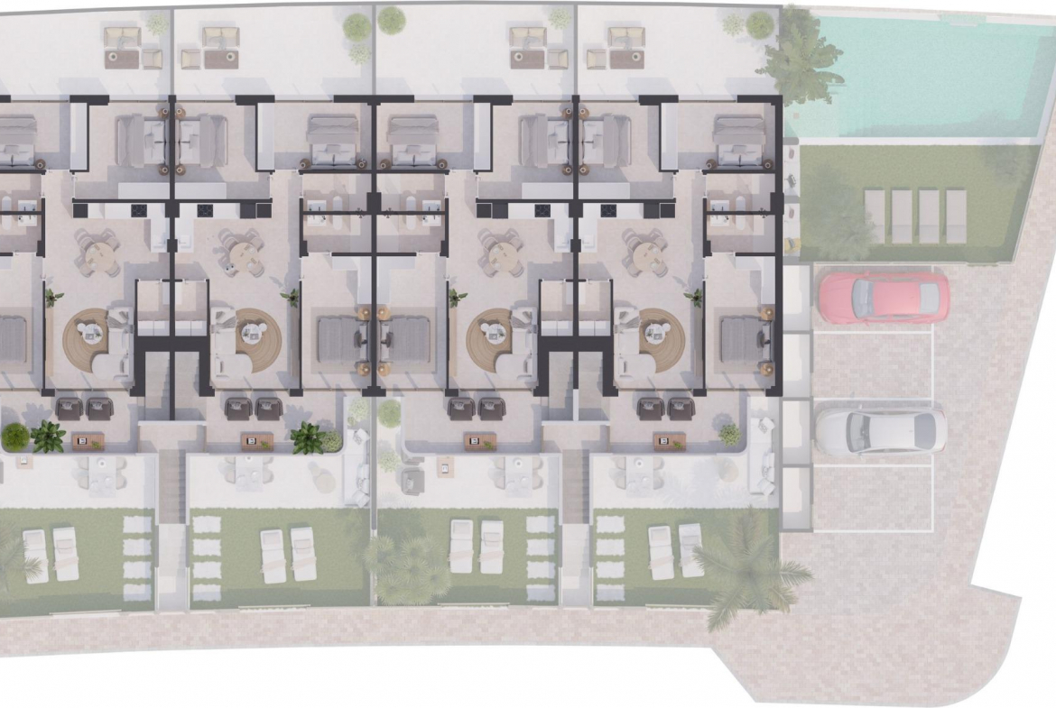 Discover this new residential complex of 8 modern bungalows in San Pedro del Pinatar, one of the most desirable locations on the Costa Cálida. These contemporary homes offer 3 bedrooms, 2 bathrooms, an open-plan kitchen with a spacious living area, built-in wardrobes, and a private terrace.