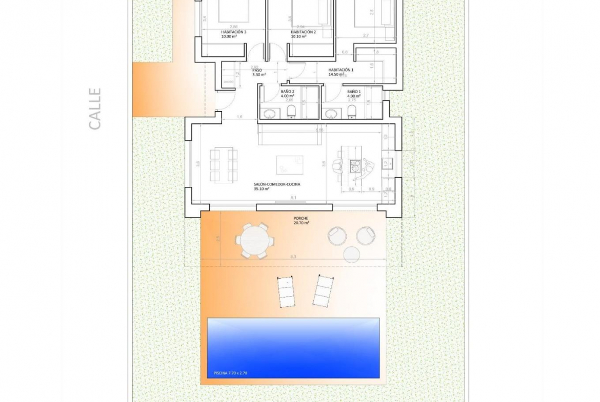 Day area: Where we find a spacious living-dining room with an open office-type kitchen (kitchen furniture included) that connects with the large modern porch through its two large windows, giving way to the outdoor garden area and why no… to the pool. Light floods every corner thanks to the large windows in the living room, which open to the porch, a modern and functional space that invites you to enjoy the outdoors to the fullest. Imagine spending afternoons with family and friends, surrounded by a serene and natural environment. As an extra space, it has a